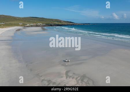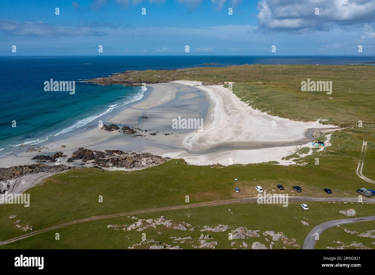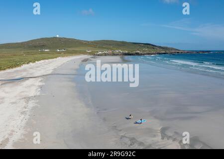 Aerial view of surfers on Balephuil Beach Balephuil Bay Isle of Tiree