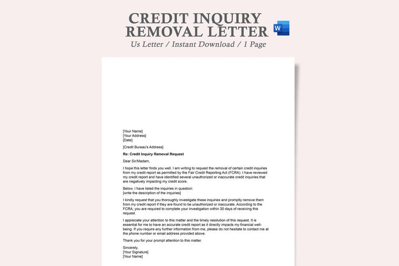 Credit Inquiry Removal Letter Template Download Printable PDF