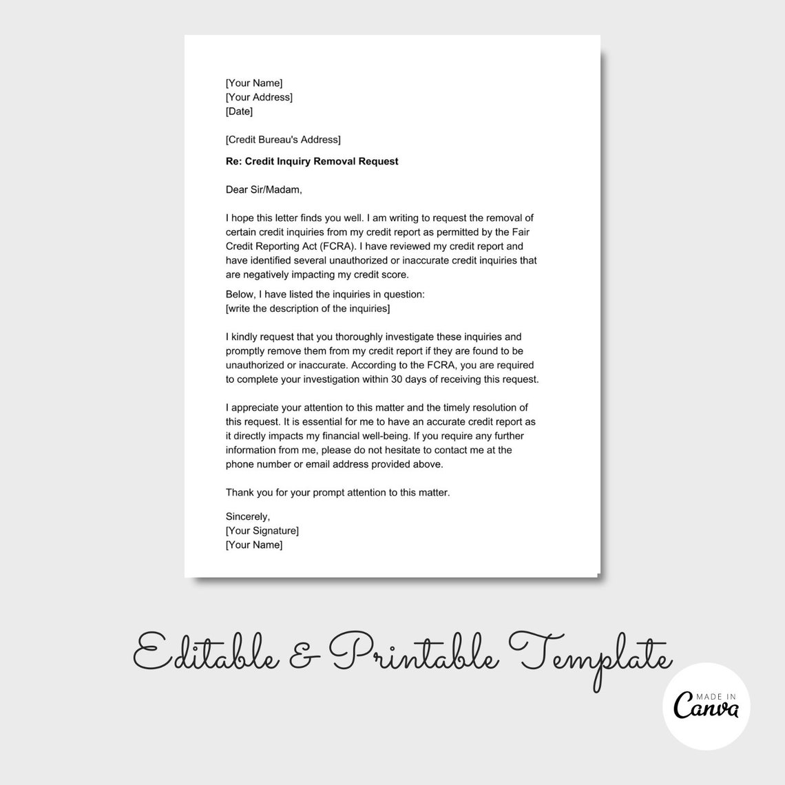 Inquiry Removal Letter Template Looking To Record A Credit Inquiry