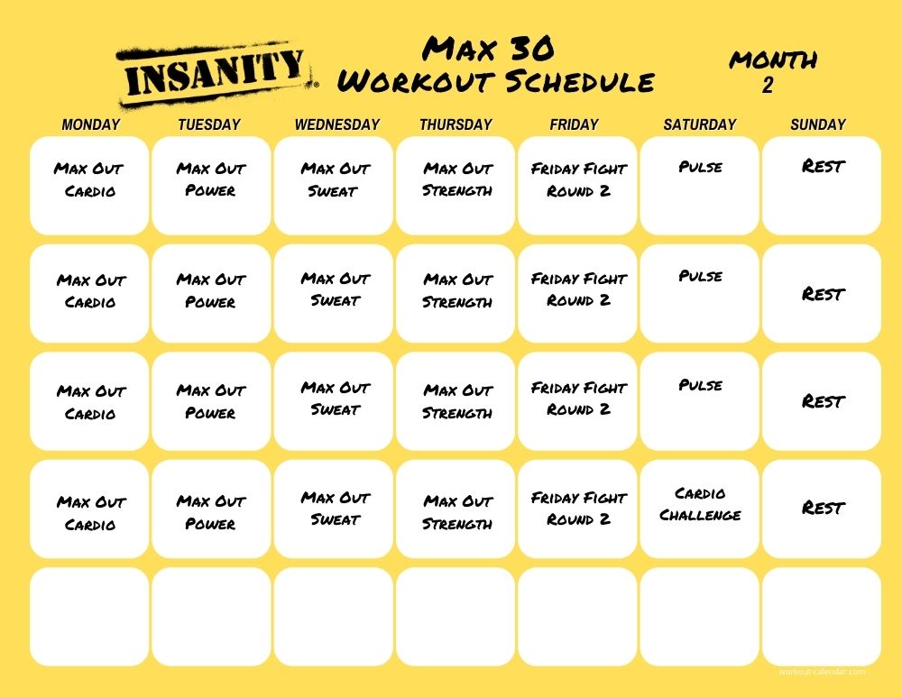 Max 30 Month 2 Insanity Max 30 Calendar Insanity Max 30 Workouts