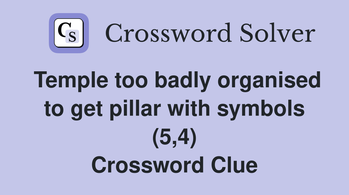 Temple too badly organised to get pillar with symbols (5 4) Crossword