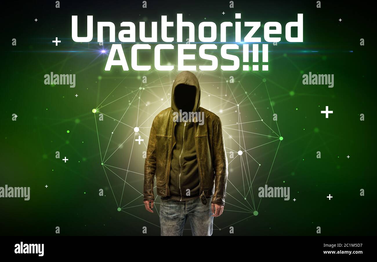 Mysterious hacker with Unauthorized ACCESS inscription online