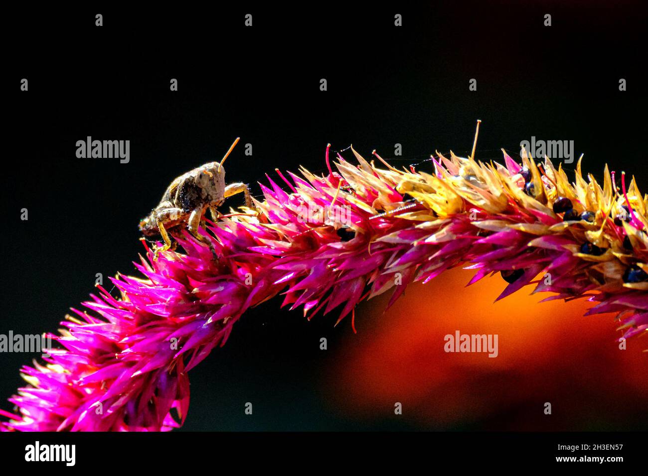 Closeup of an insect on the flower Celosia argentea the plumed