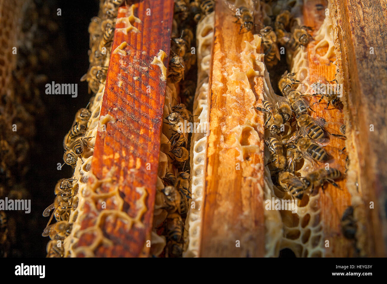 View of wasps on comb wild insect collect nectar Stock Photo Alamy