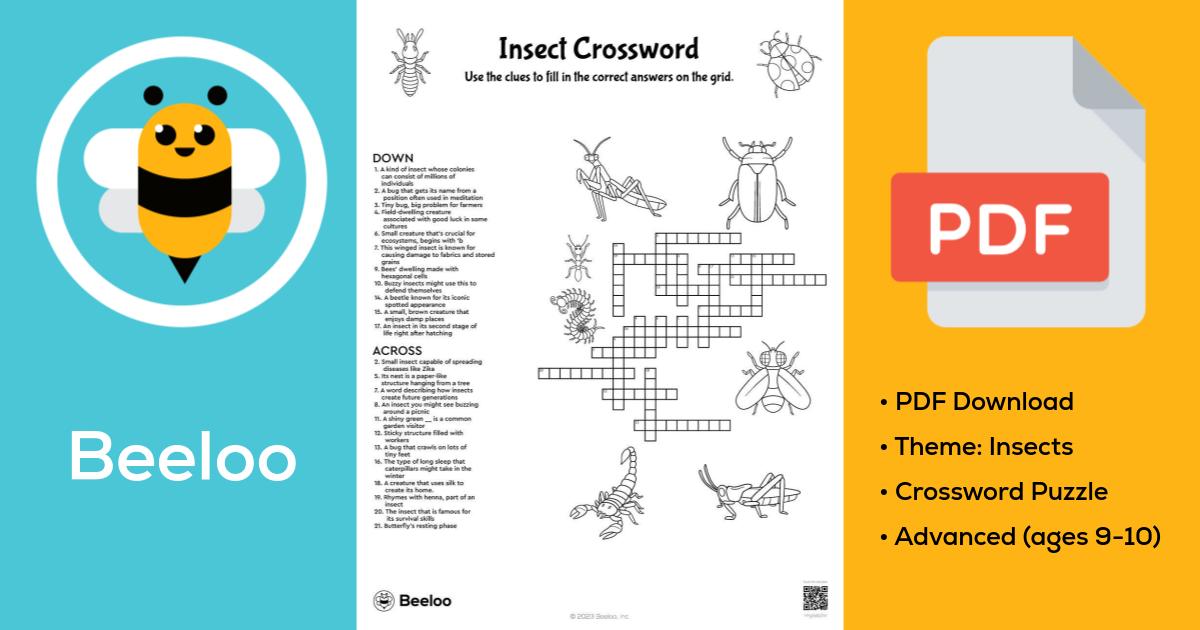 Insect themed Crossword Puzzles • Beeloo Printable Crafts and