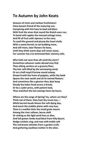 To Autumn by John Keats Teaching Resources