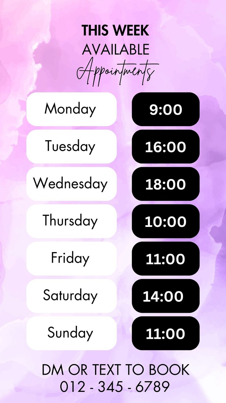 Instagram Story Availability Calendar Nail Tech Booking Hairdresser