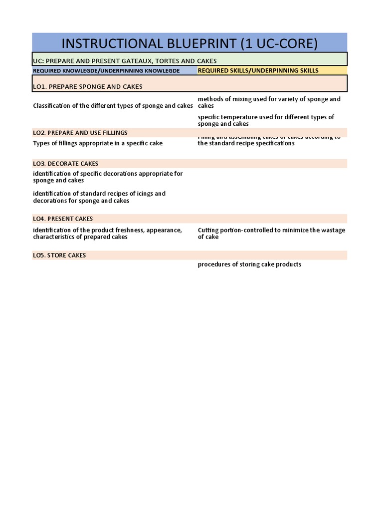 Instructional Blueprint (1 Uc Core) : Uc: Prepare and Present Gateaux