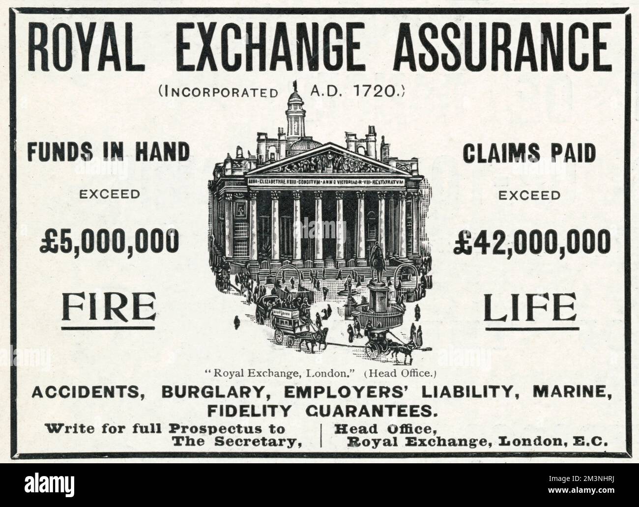 Advert for Royal Exchange Assurance 1905 Stock Photo Alamy