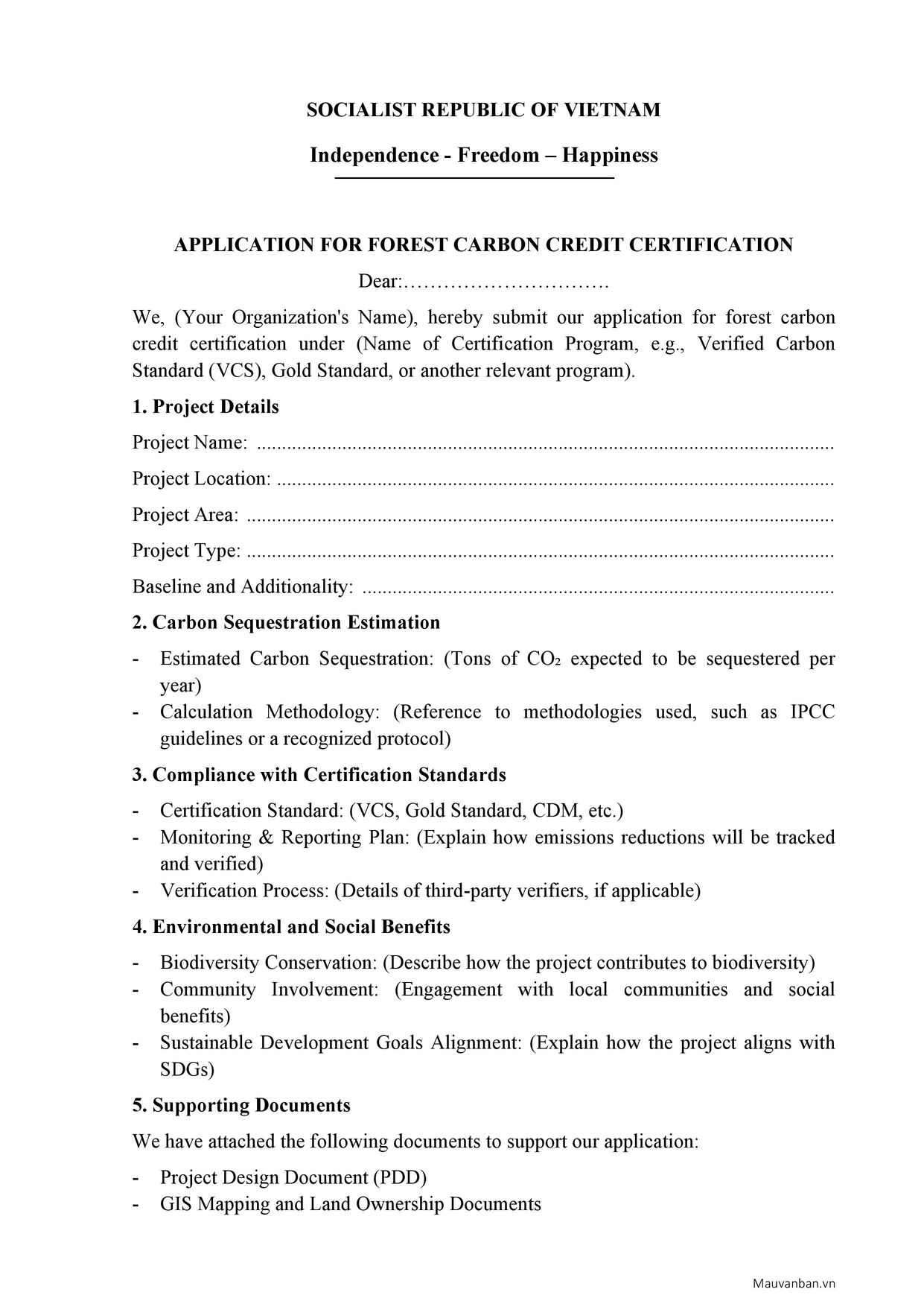 Application for forest carbon credit certification Nฤng lฦฐแปฃng Tร i