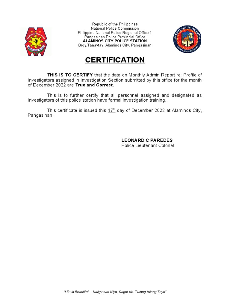 CERTIFICATION Profile of Investigator PDF