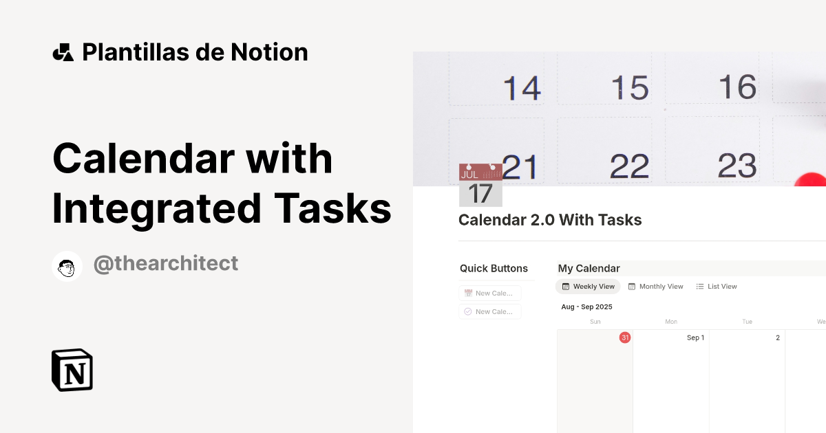 Plantilla Calendar with Integrated Tasks Notion Marketplace