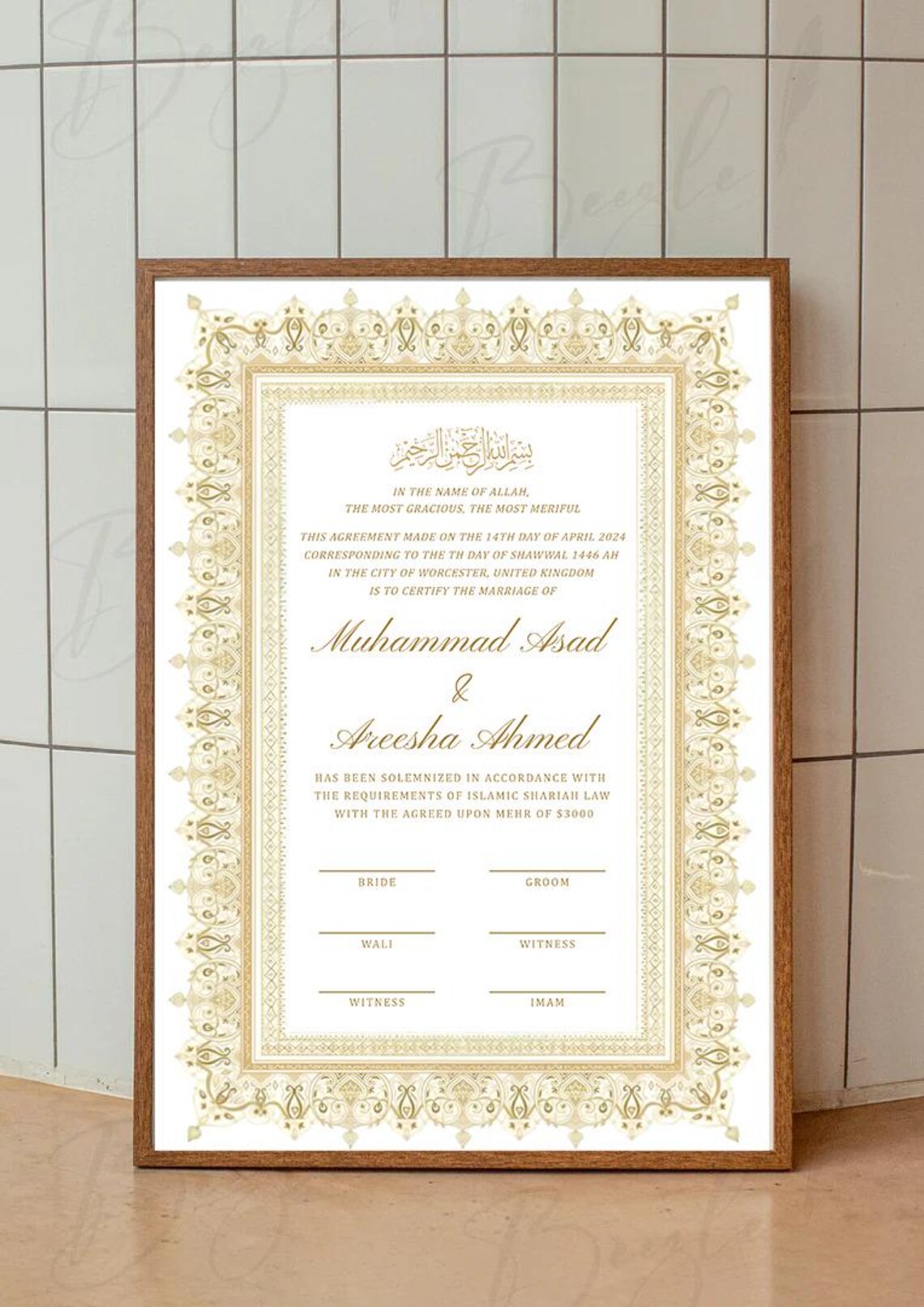 Gold Islamic Nikah Nama Gold Nikkah Contract Template Editable Nikkah