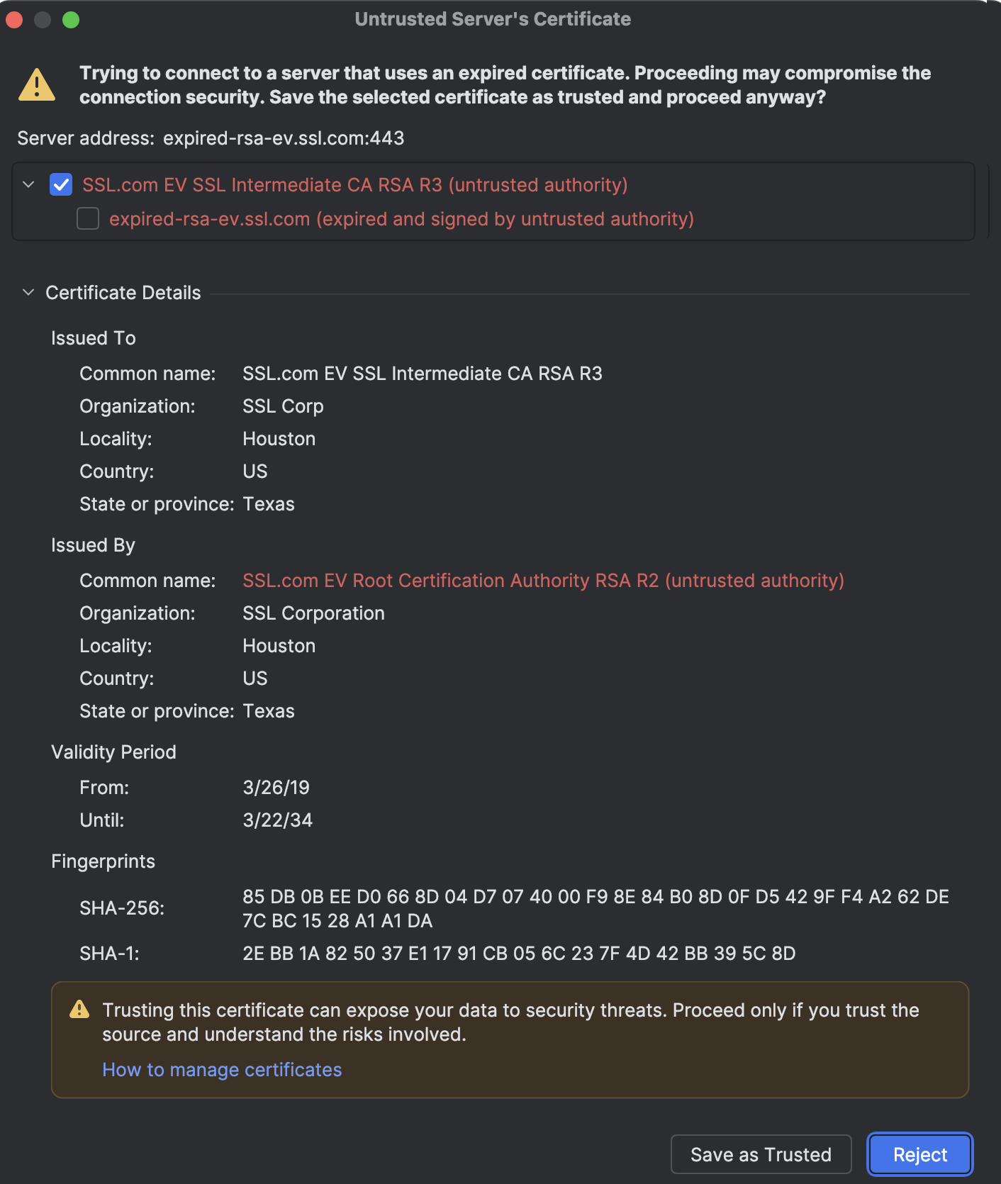 Getting quot Server #39 s certificate is not trusted quot message IDEs Support