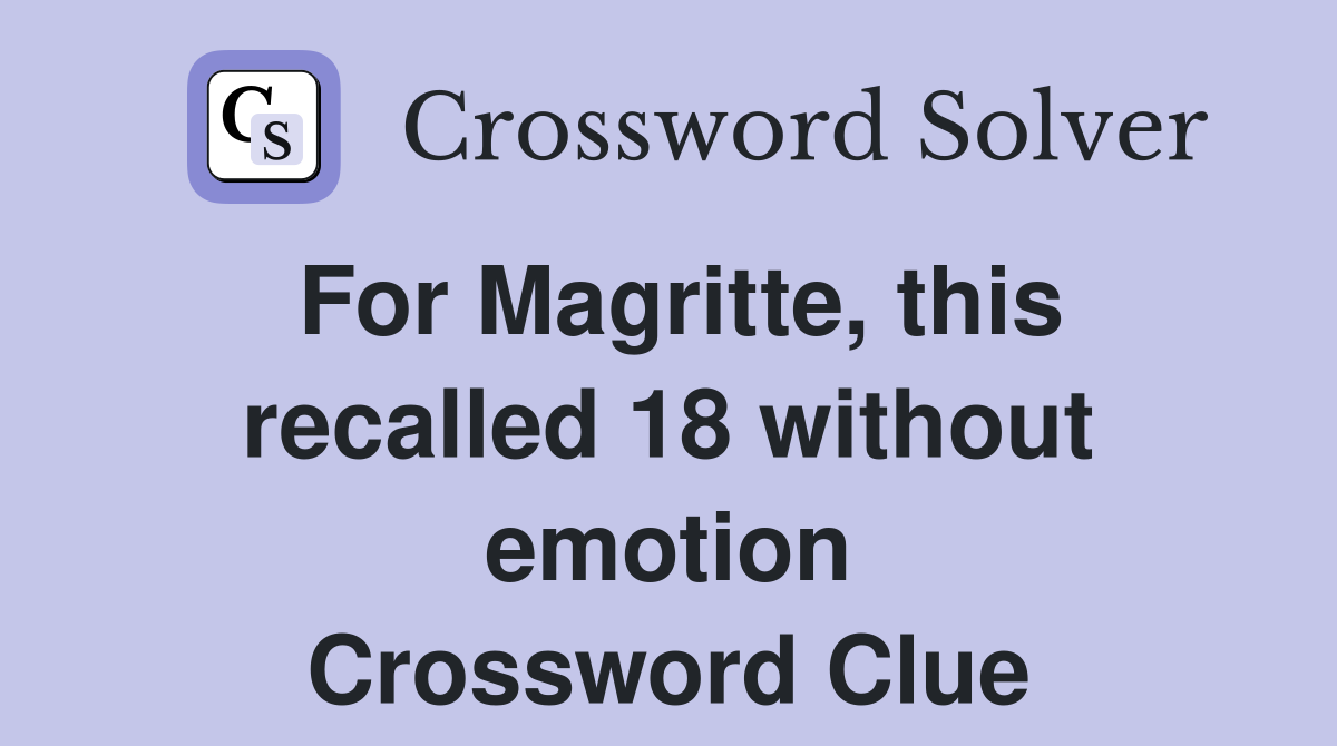 For Magritte this recalled 18 without emotion Crossword Clue Answers