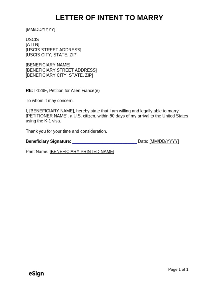 Letter of Intent to Marry Beneficiary Sample and Examples