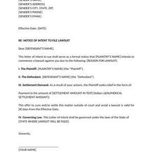 Letter of Intent to Sue Template Etsy