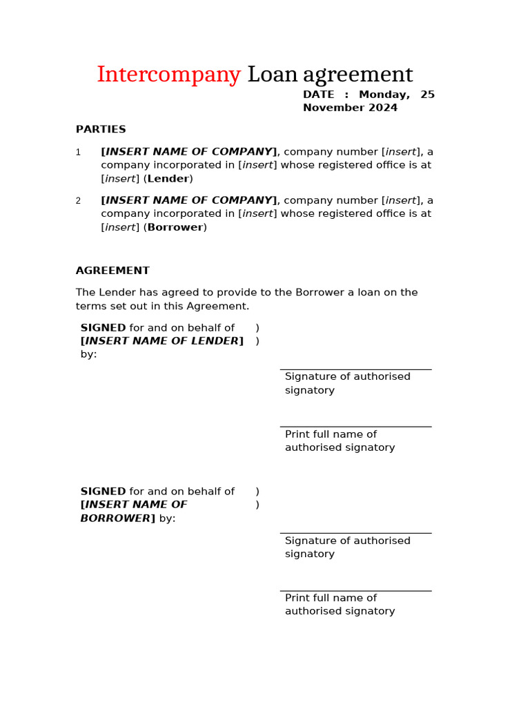 Intercompany Loan Agreement Template UK