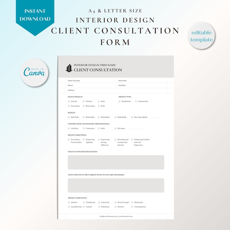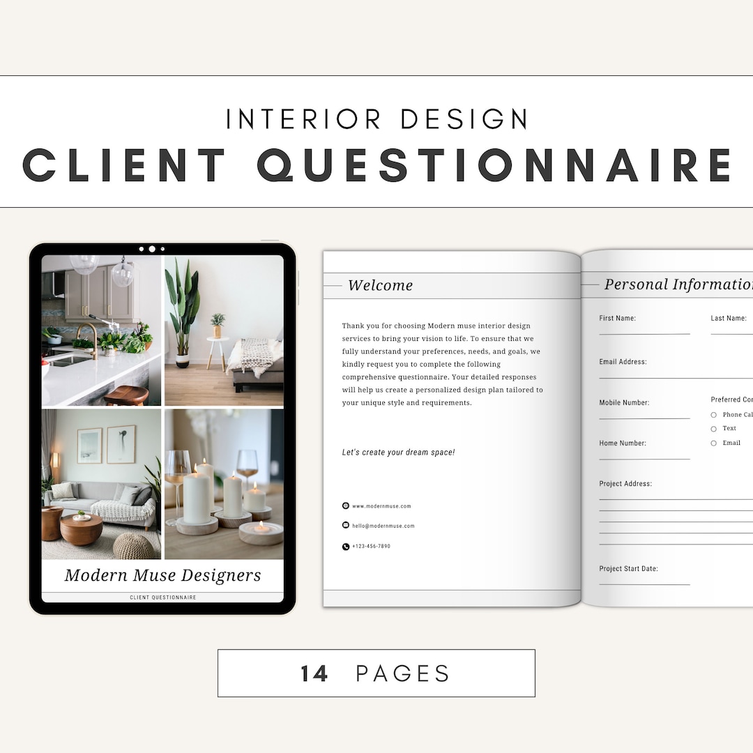 Interior Design Client Questionnaire Fully Editable Canva Etsy