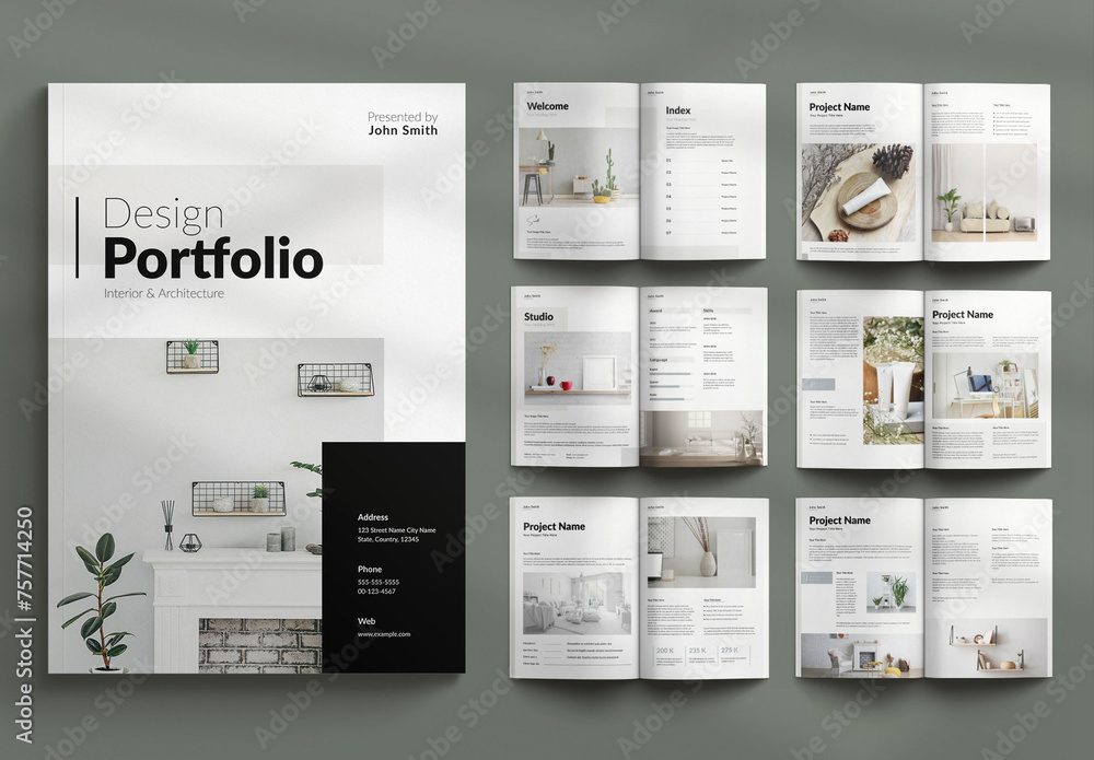 Modern Interior Design Portfolio Layout Template with Black Accents