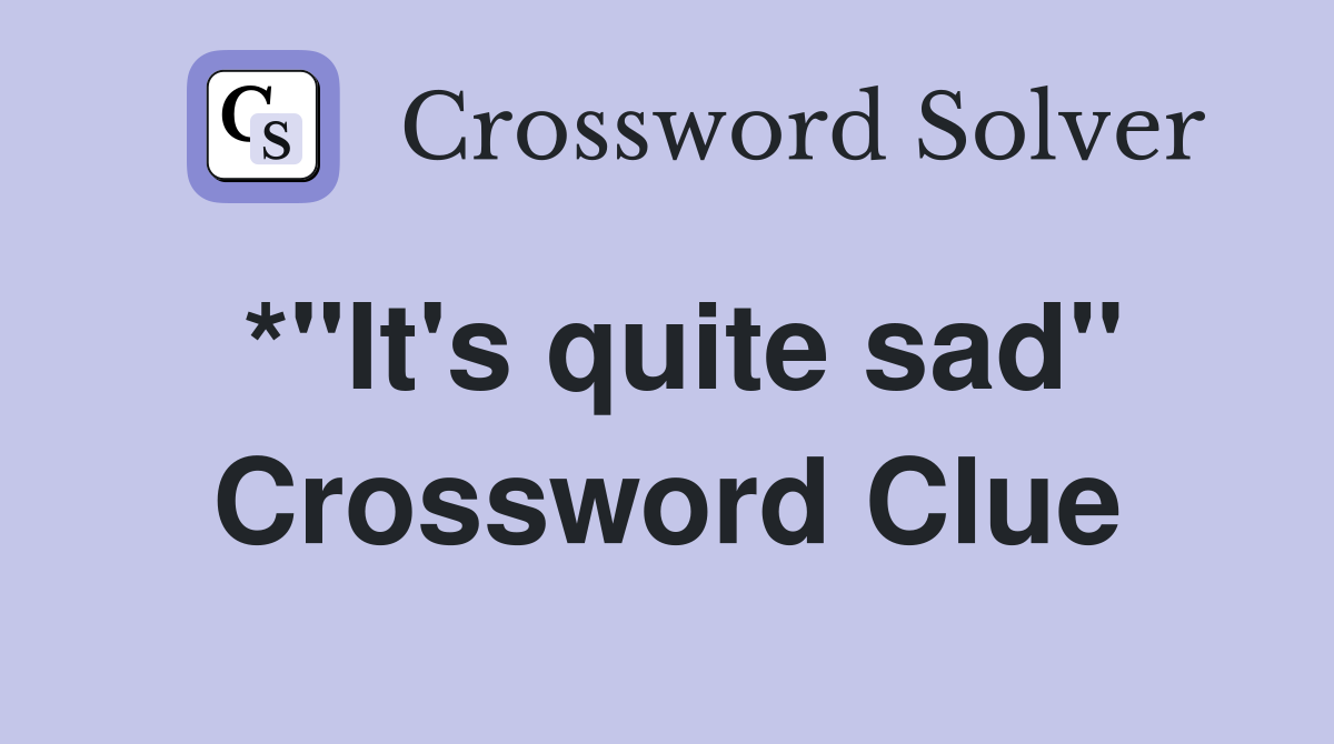 * quot It #39 s quite sad quot Crossword Clue Answers Crossword Solver
