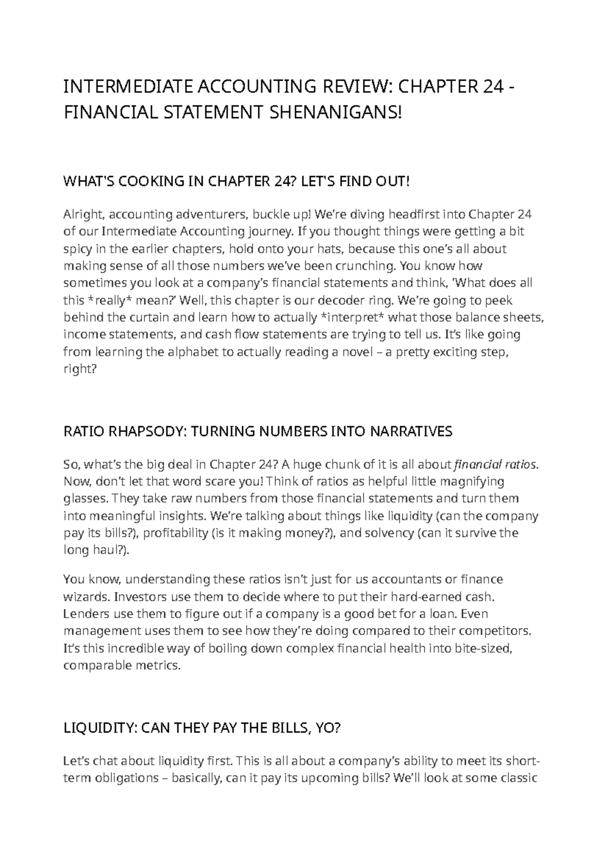 Intermediate Accounting Review: Chapter 24 Financial Ratios Explained