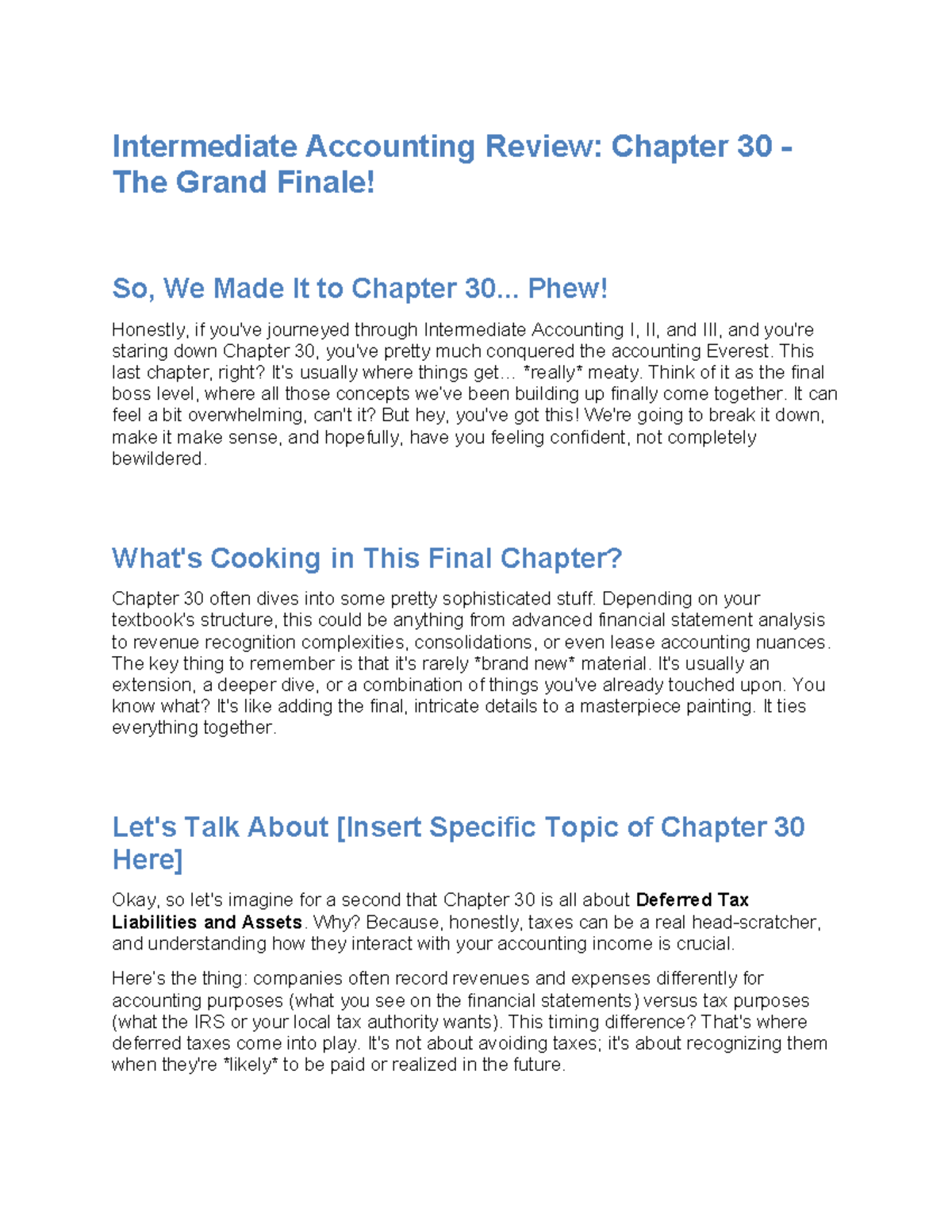 Intermediate Accounting 30: Essential Review of Chapter 30 Concepts