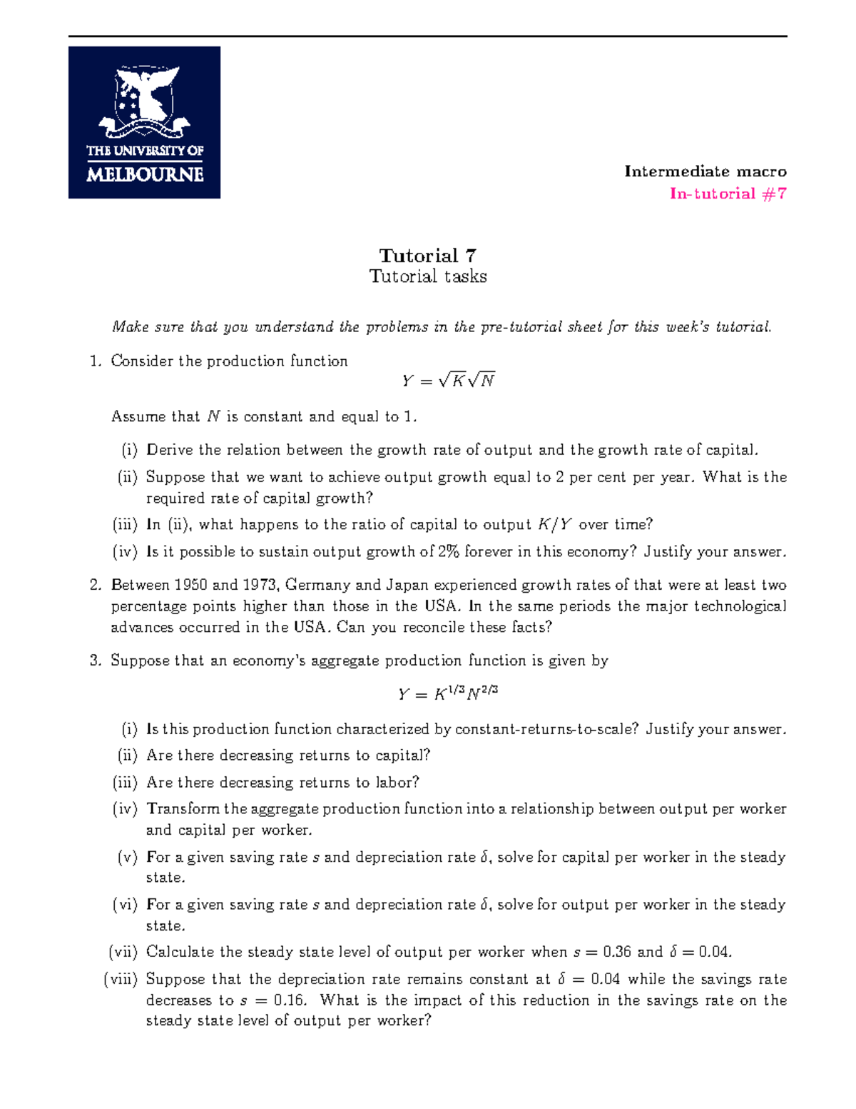 Intermediate Macro (ECO 301) Tutorial 7 Solutions Notes Studocu