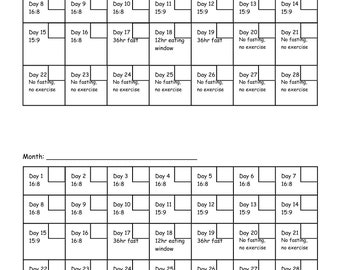 Two Month Fasting Calendar Intermittent Fasting Extended 35 day Cycle