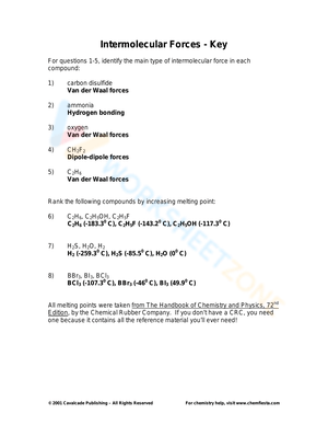 SOLUTION: Intermolecular forces worksheet and key chemistry Studypool
