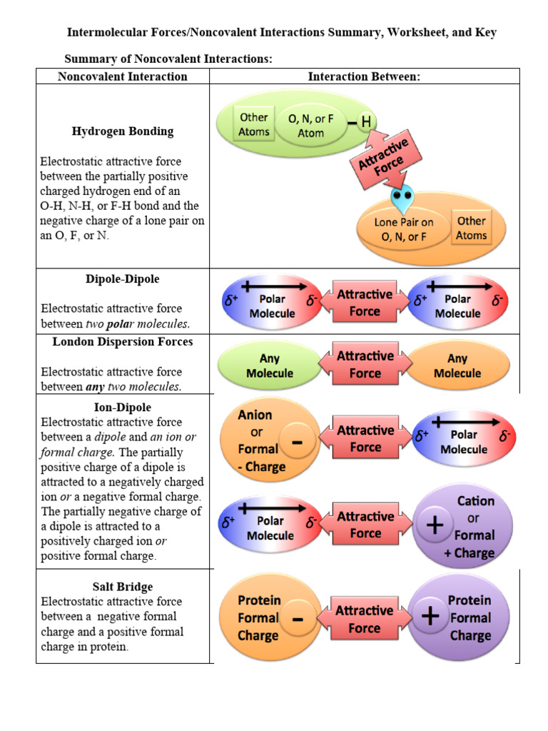 Intermolecular Forces Worksheet Key covalen bonds and intermolecular