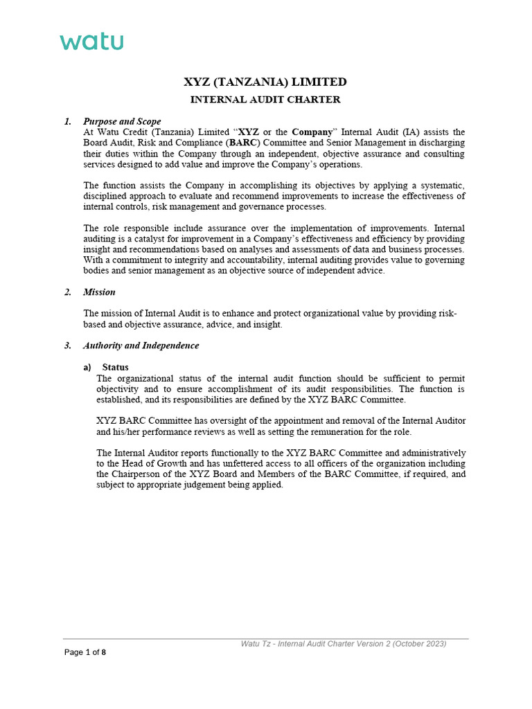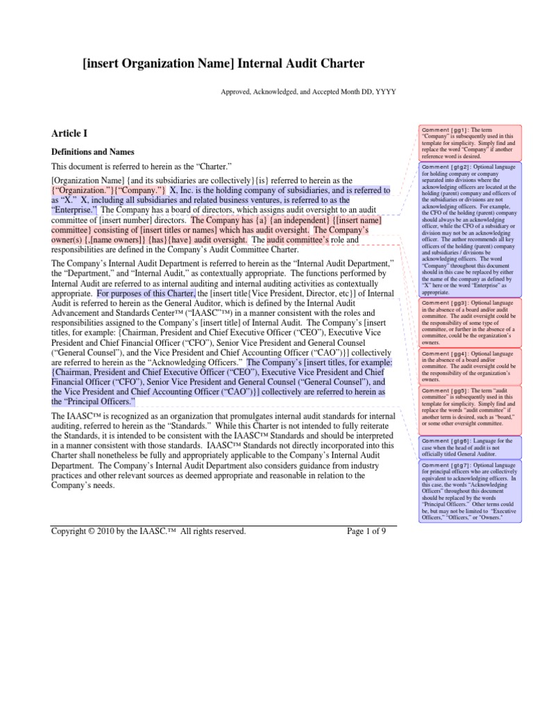 Internal Audit Charter / internal audit charter pdf / PDF4PRO