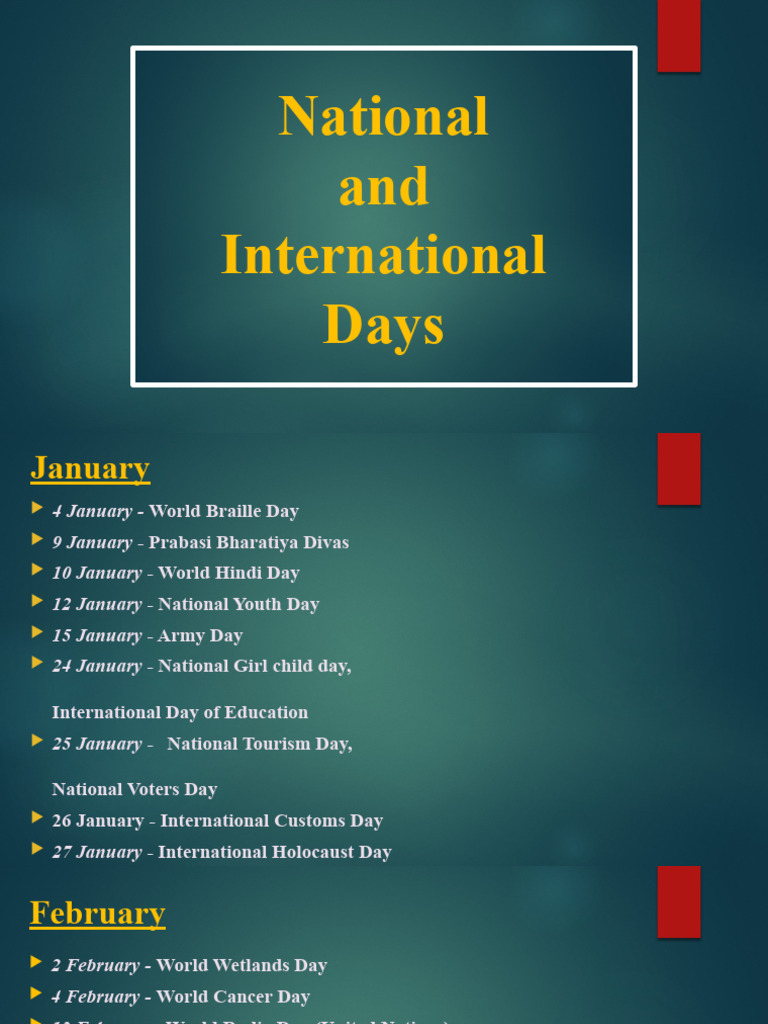 National and International Days PDF United Nations International