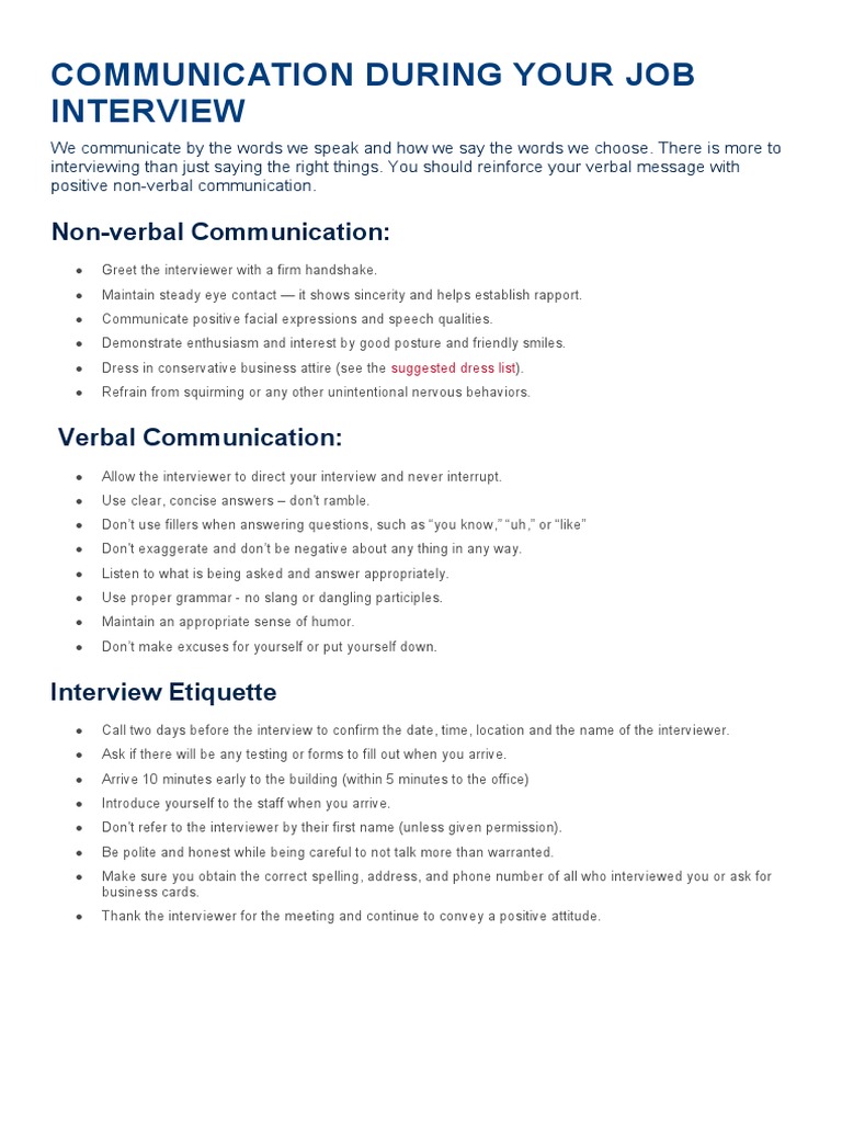 Communication During Your Job Interview PDF Communication