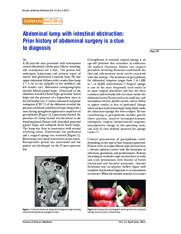 (PDF) Abdominal lump with intestinal obstruction: Prior history of