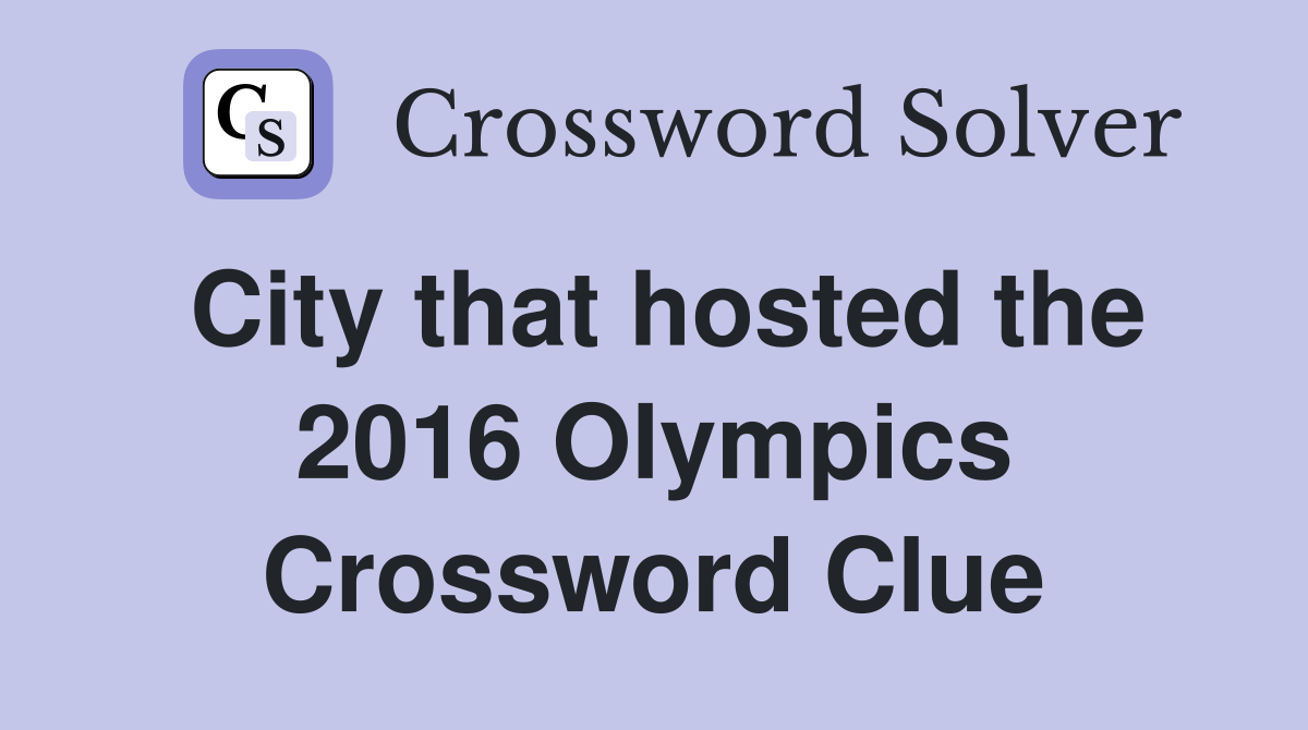 City that hosted the 2016 Olympics Crossword Clue Answers Crossword