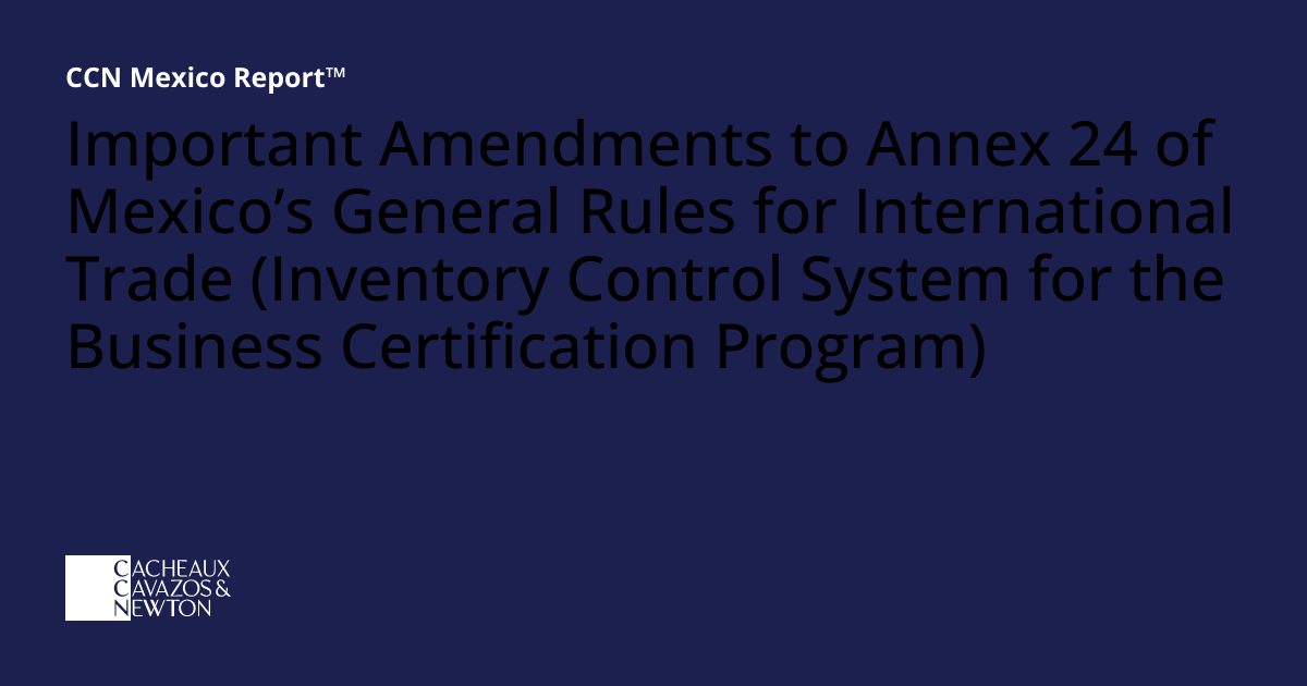 Important Amendments to Annex 24 of Mexico s General Rules for