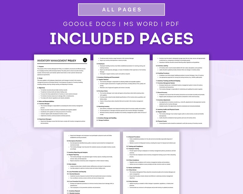 Inventory Management Policy Template (Word PDF) Free Trial