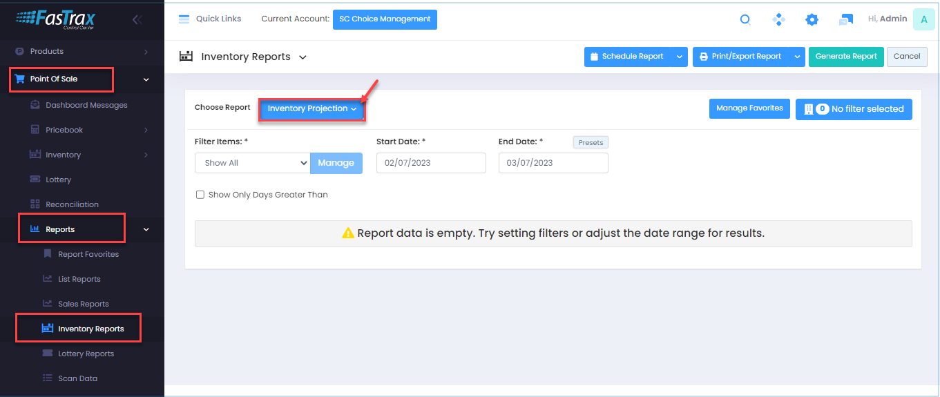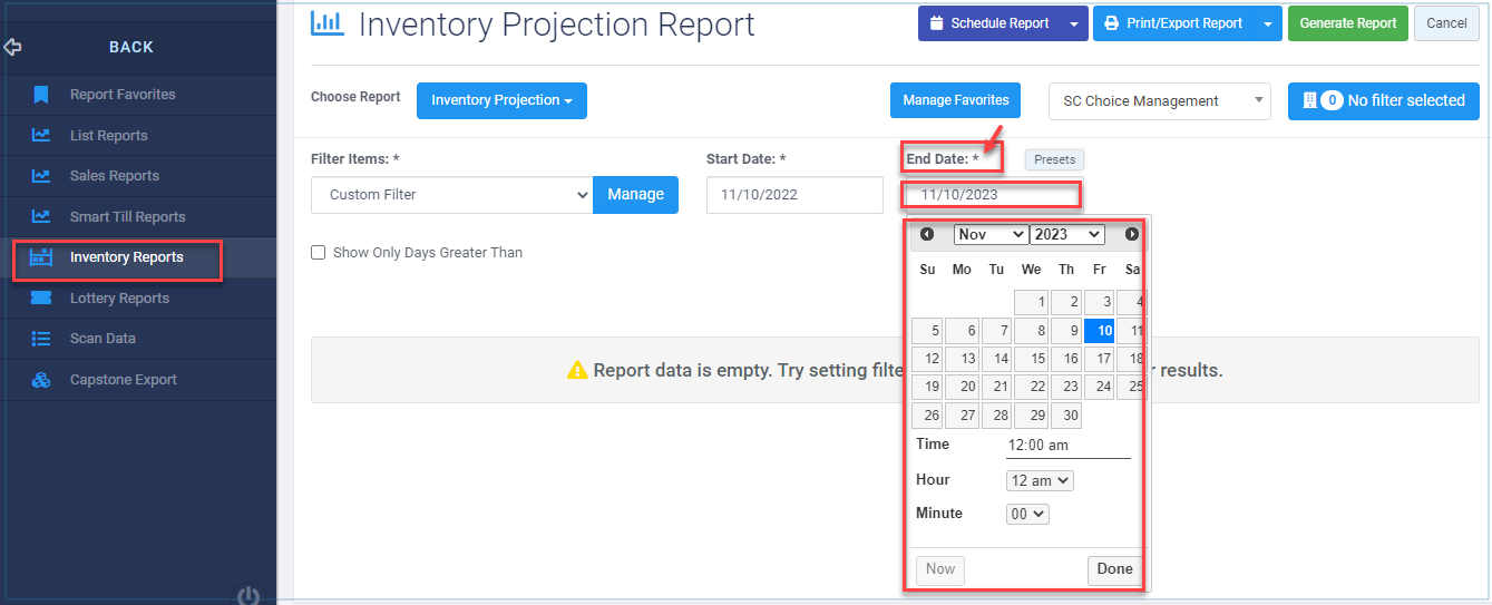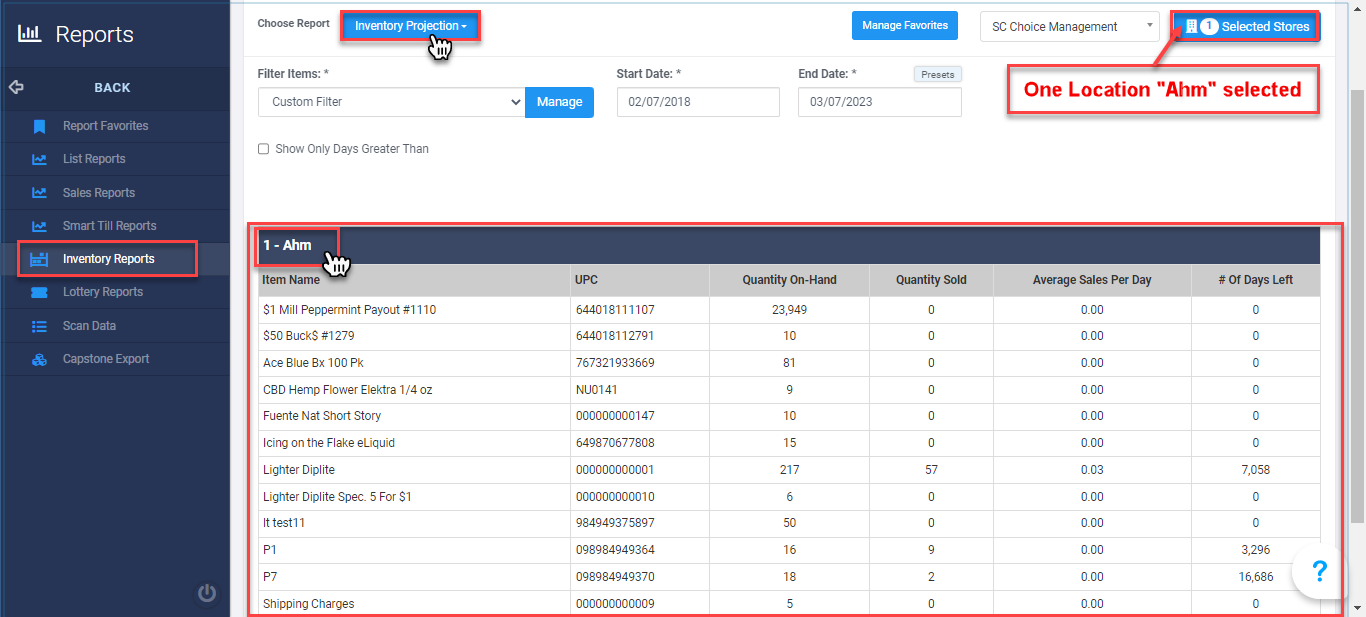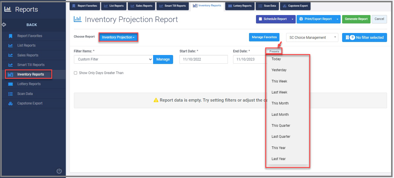 Inventory Projection Report