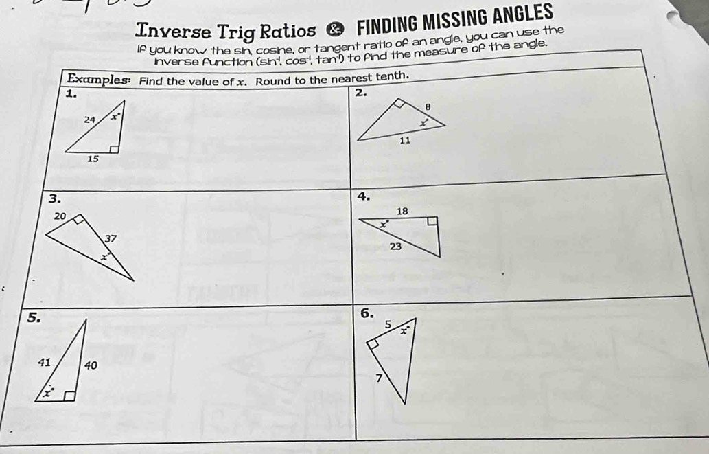 Solved: Inverse Trig Ratios FINDING MISSING ANGLES of an angle you
