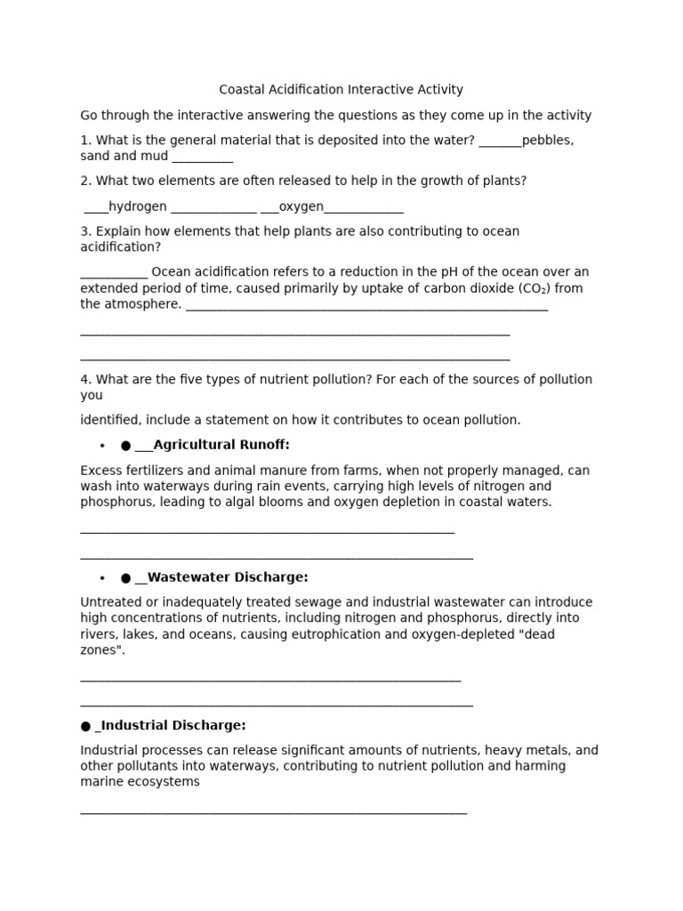 Ocean Acidification Interactive Worksheet PDF Eutrophication