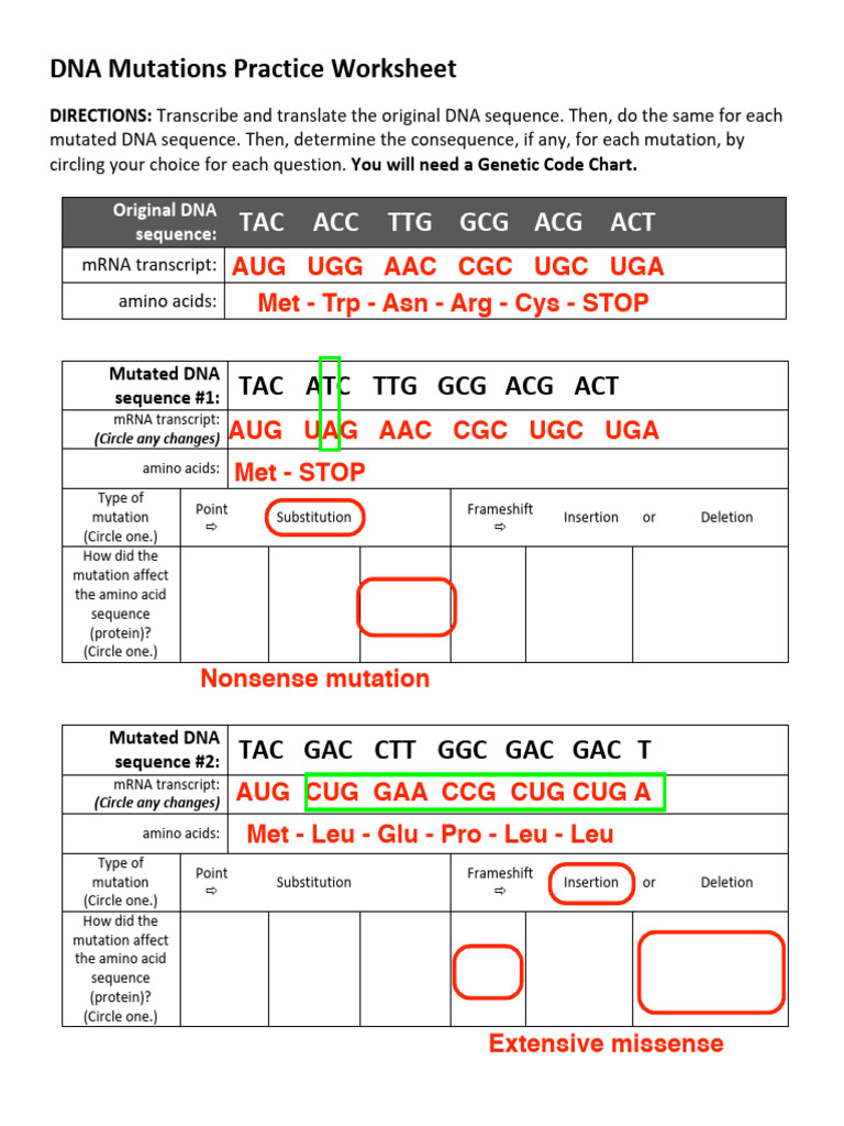 SOLUTION: Mutations Practice Studypool Worksheets Library