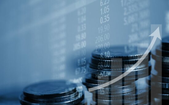 Golden Coins and Rising Arrows on Financial Graphs premium 4K wallpaper
