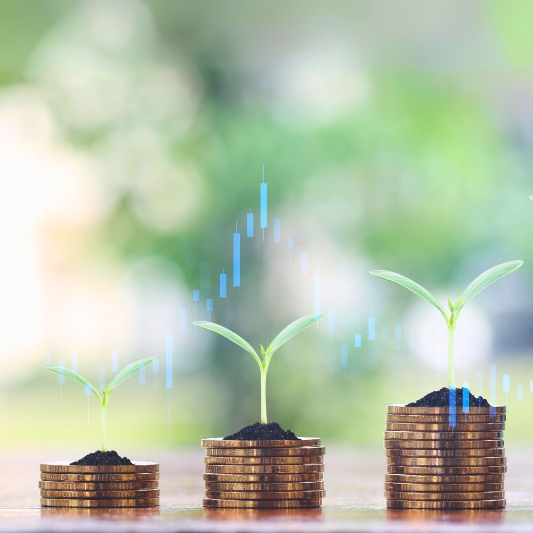 Premium Photo Investment Growth Concept with Coins Seedlings