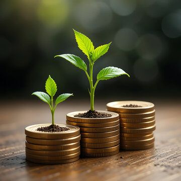 Premium Photo Financial Growth Blooms Seedlings on Stacked Coins a