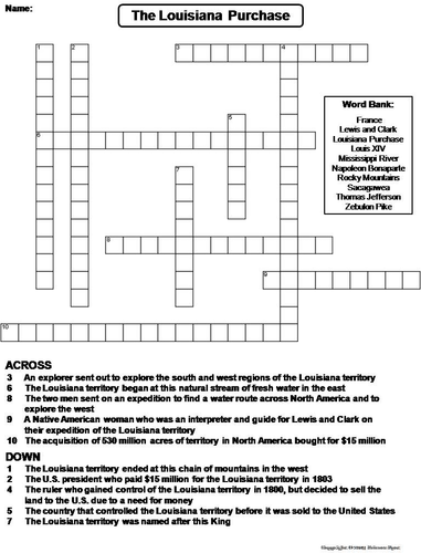 Louisiana Purchase Crossword Puzzle Teaching Resources