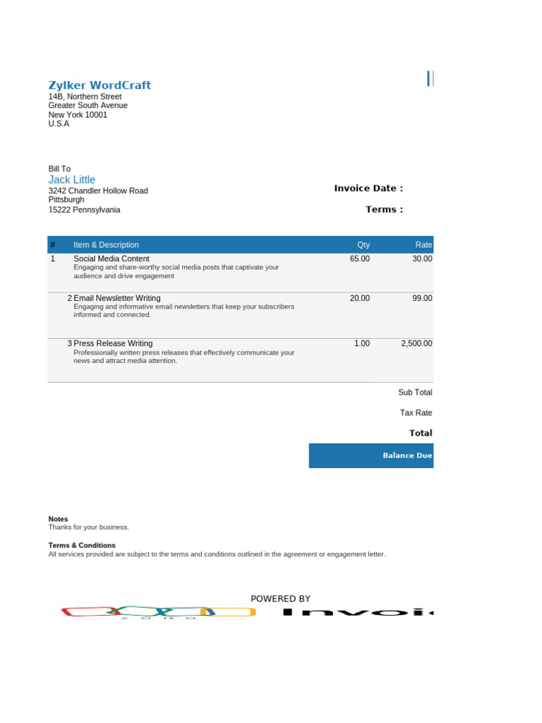 Freelance Writer Invoice Template Zoho Sheets PDF Communication