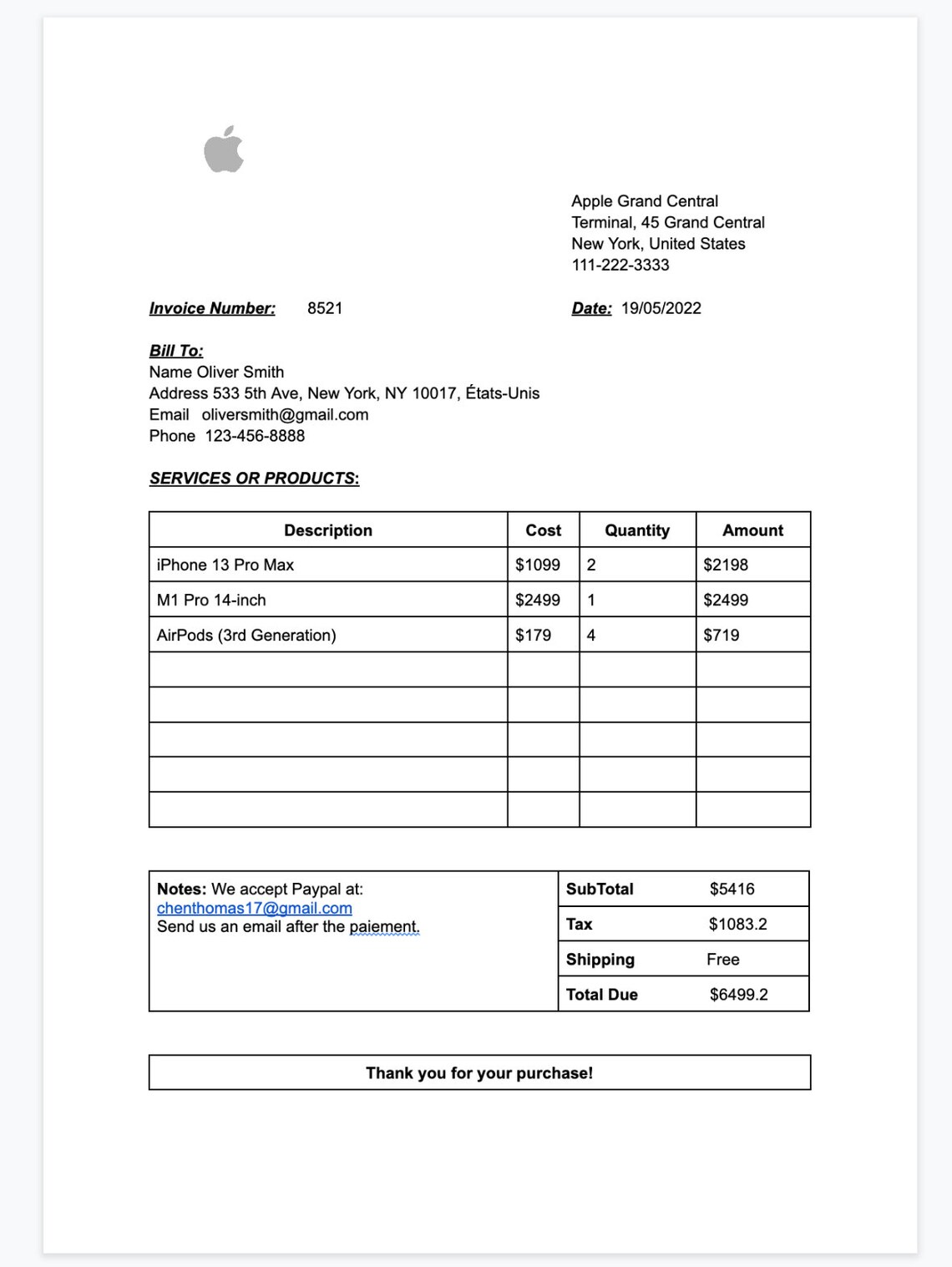 NF Invoice Apple Iphone PDF Invoice Receipt