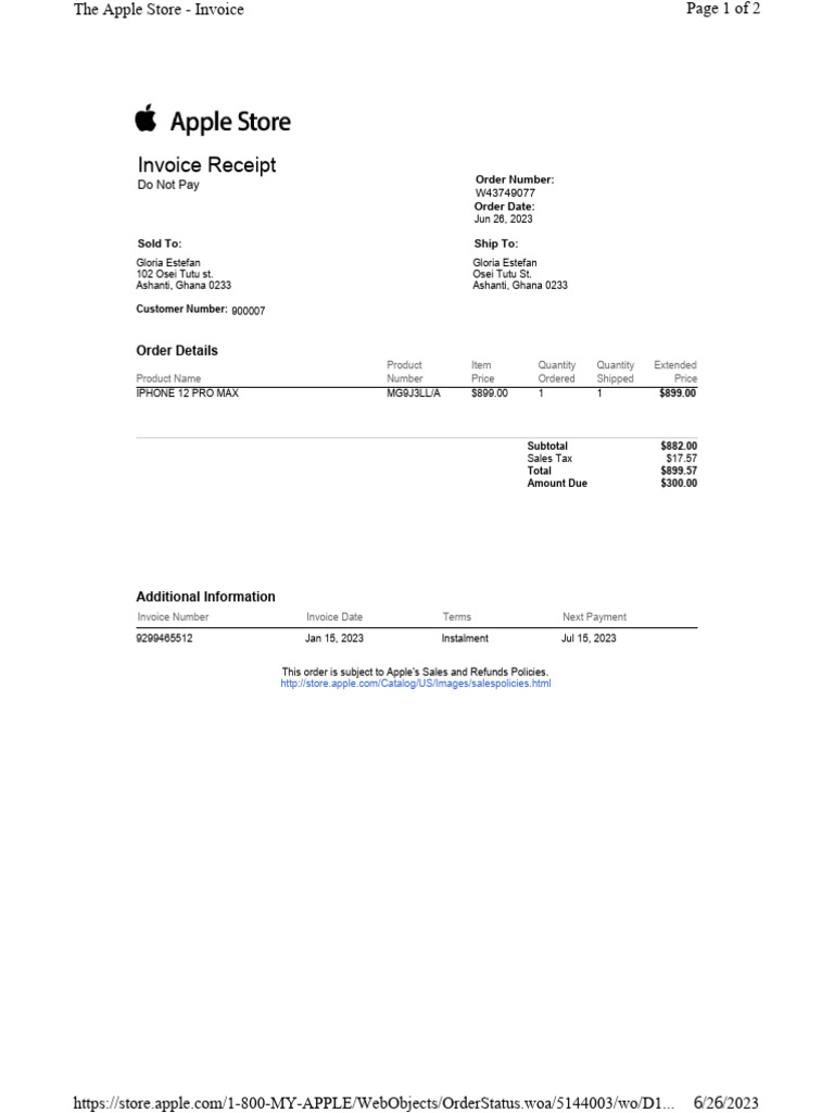 The Apple Store Invoice PDF Invoice Receipt
