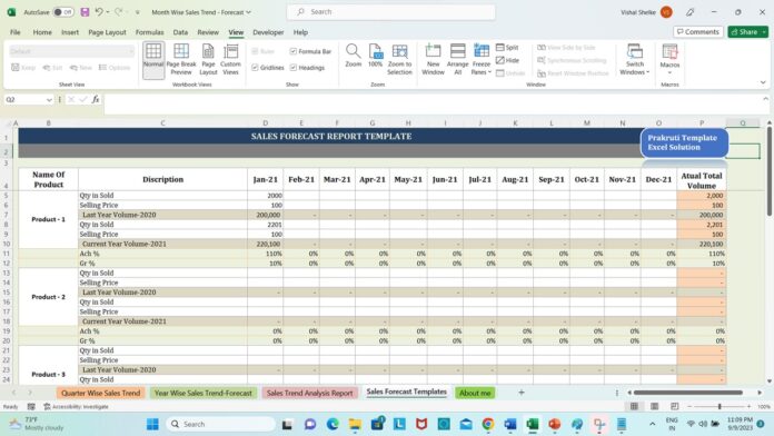 12 Month Sales Forecast Excel Template
